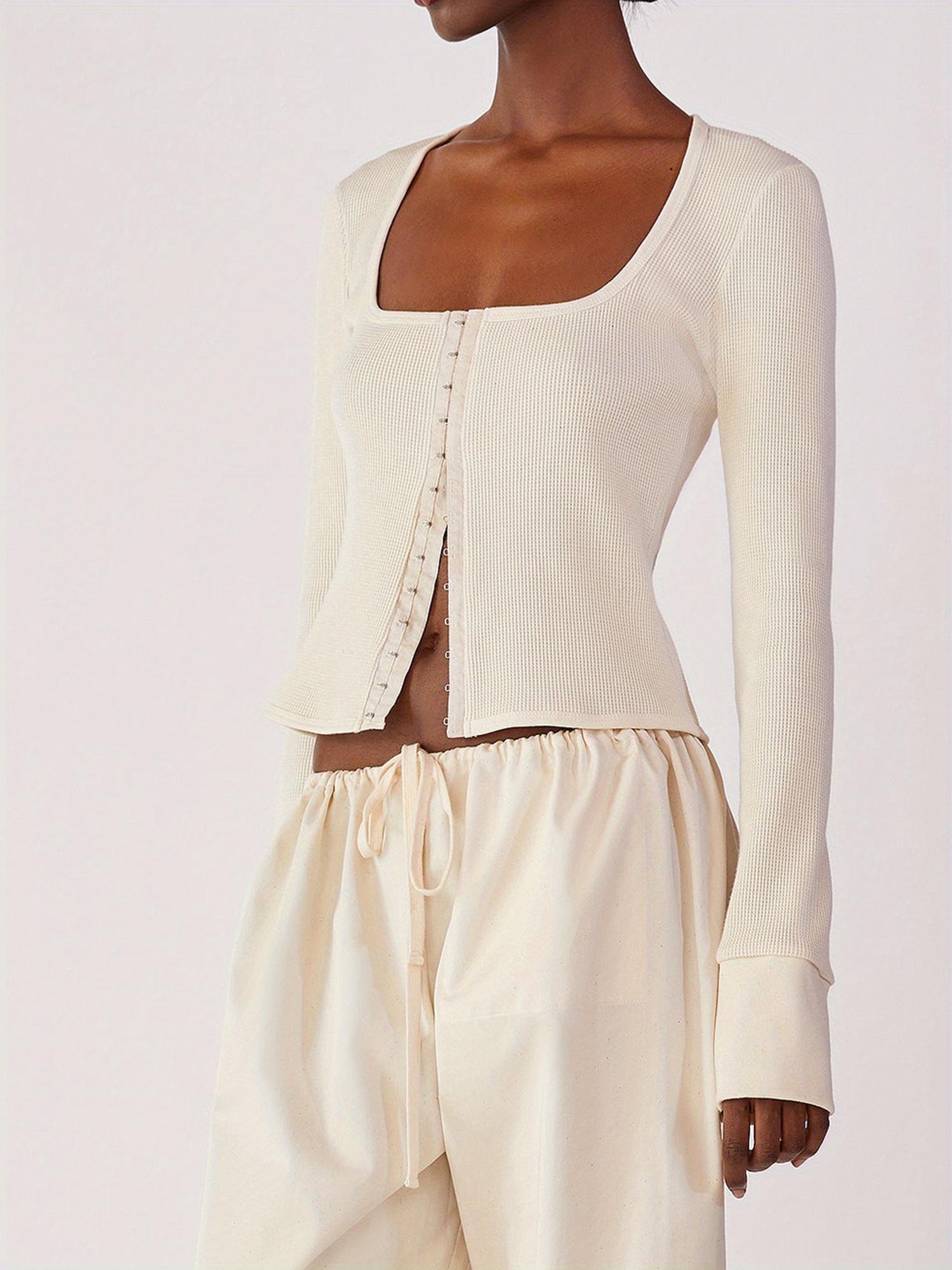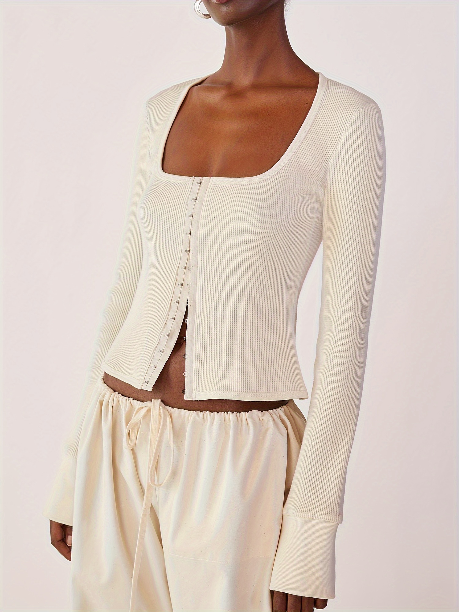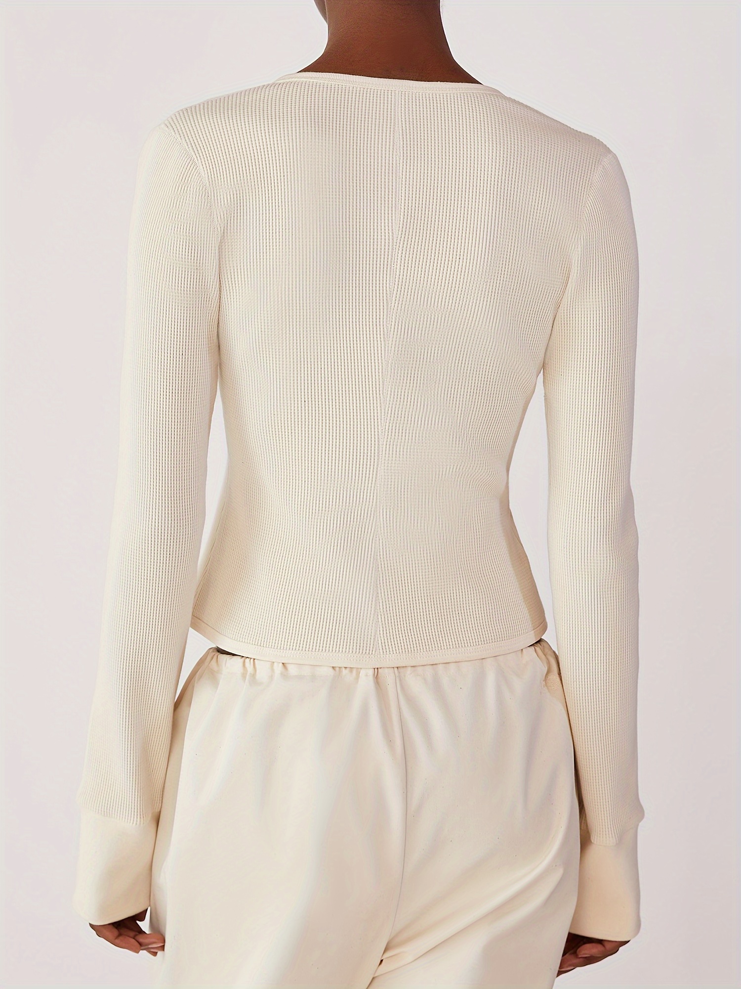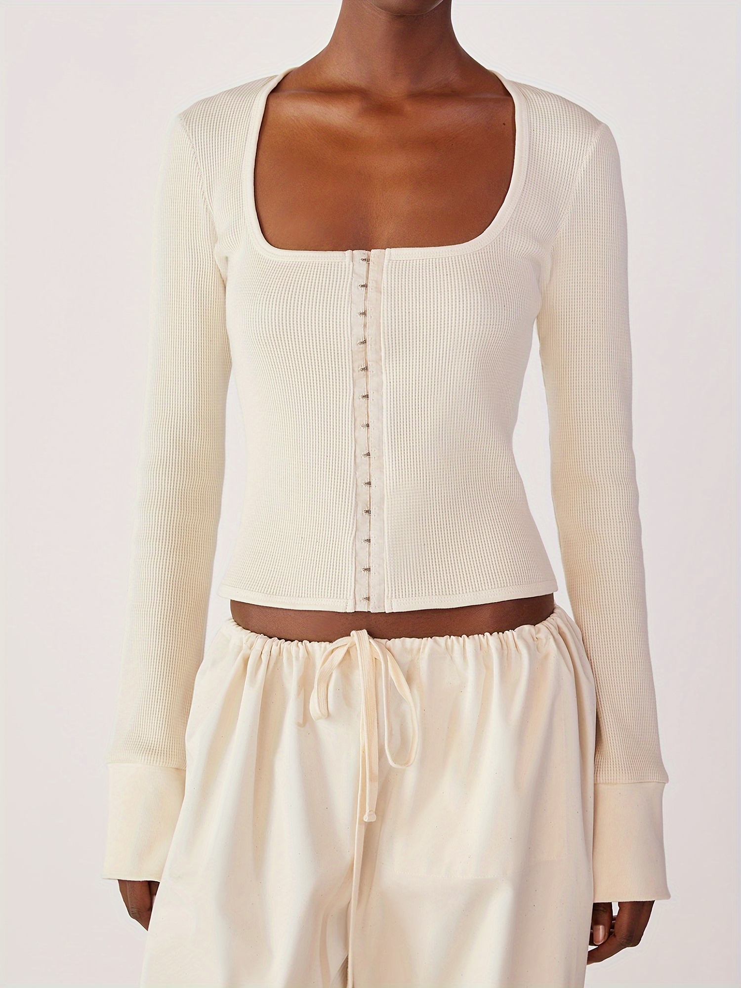 1pc Women'S Plus Size Casual Long Sleeve T-Shirt - Solid Color Polyester Square Neck Top with Slight Stretch, Knit Waffle Fabric, Slim Fit Streetwear for All Seasons