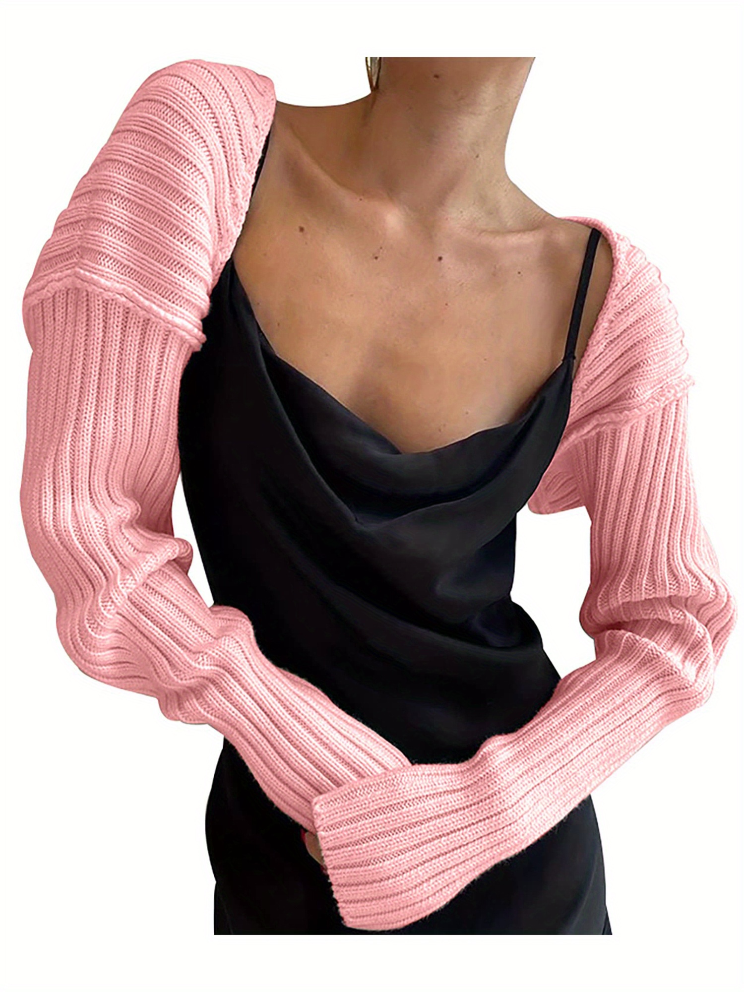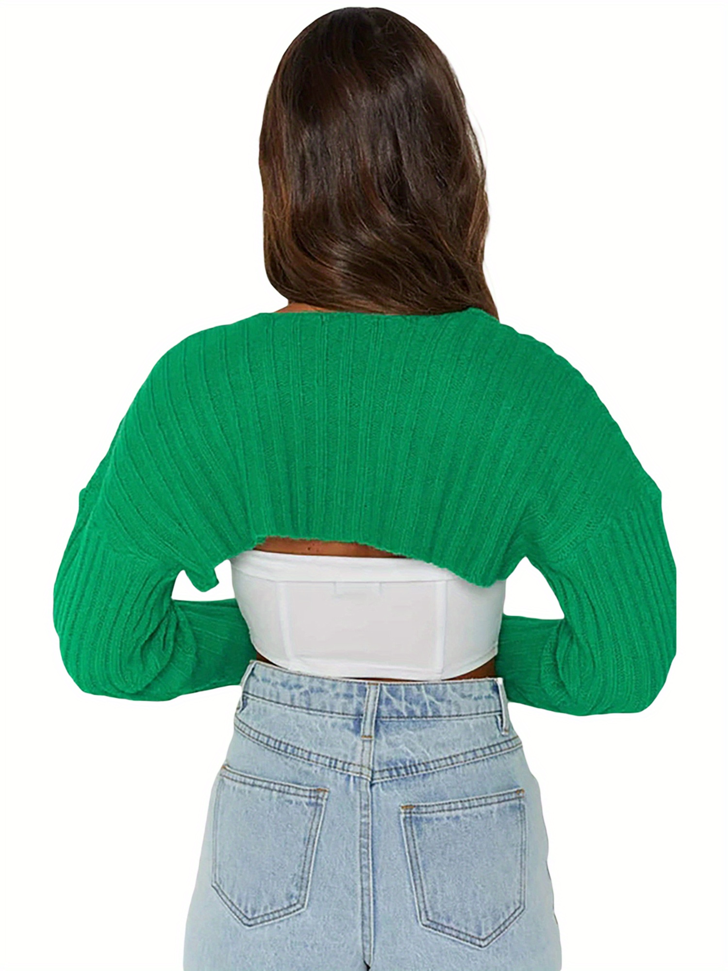 Plus Size Casual Knitted Cardigan, Crew Neck, Medium Stretch, Solid Color, Ultra-Short Sleeve Sweater Jacket for All Seasons