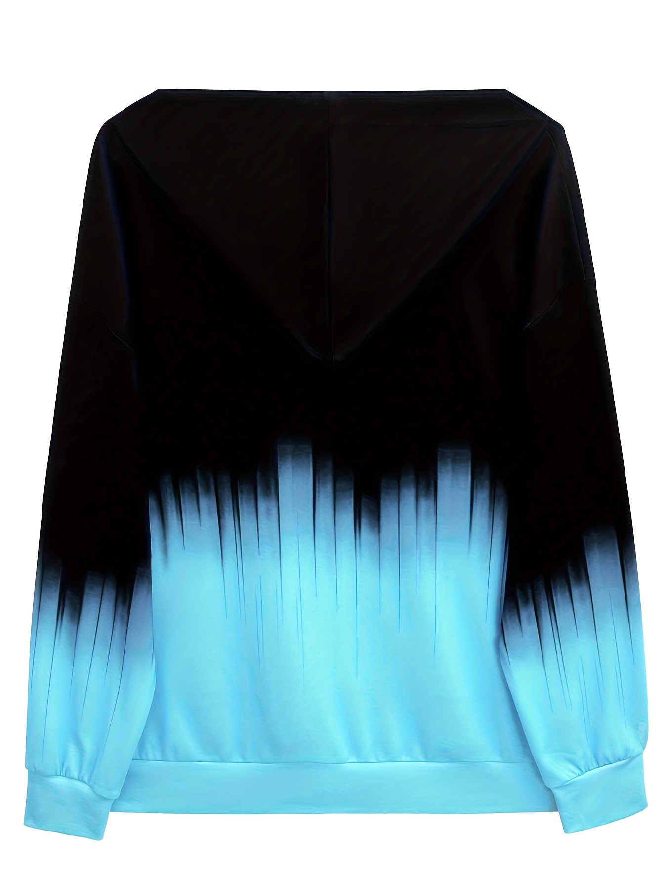 Plus Size Color Block Zip Front Hoodie, Casual Drawstring Kangaroo Pocket Long Sleeve Hooded Sweatshirt, Women's Plus Size Clothing