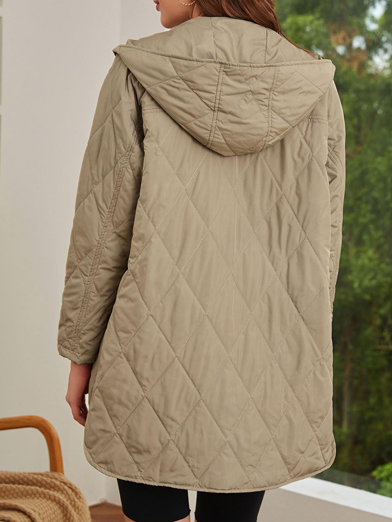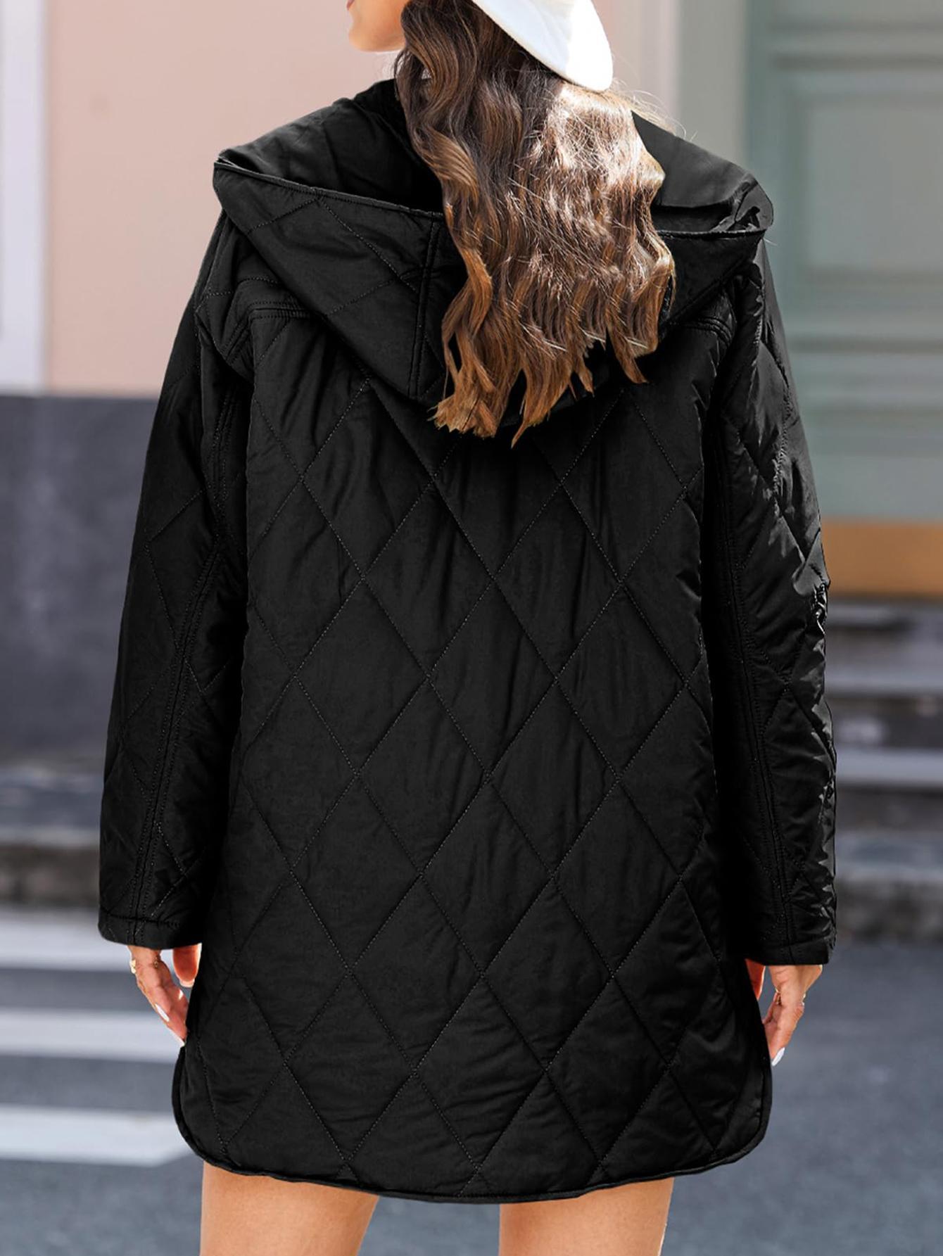 Effortless Style, Chic Plus Size Women's Hooded Winter Coat - Lightweight, Quilted Diamond Design, Casual Long Sleeve Jacket for Fall/Winter