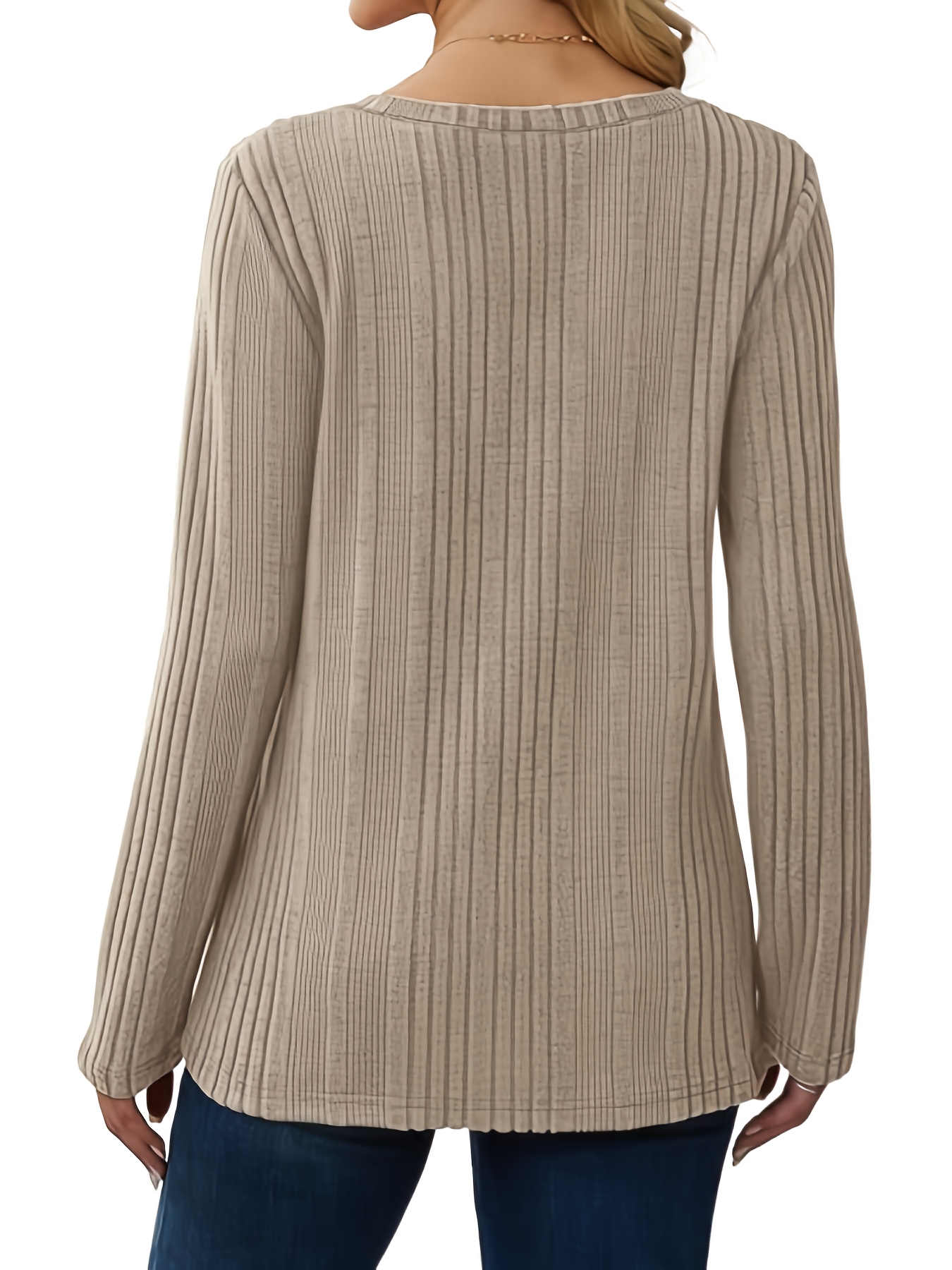 Women's Casual V-Neck Sweater - Solid Color, Ribbed Long Sleeve Knit Pullover, Machine Washable