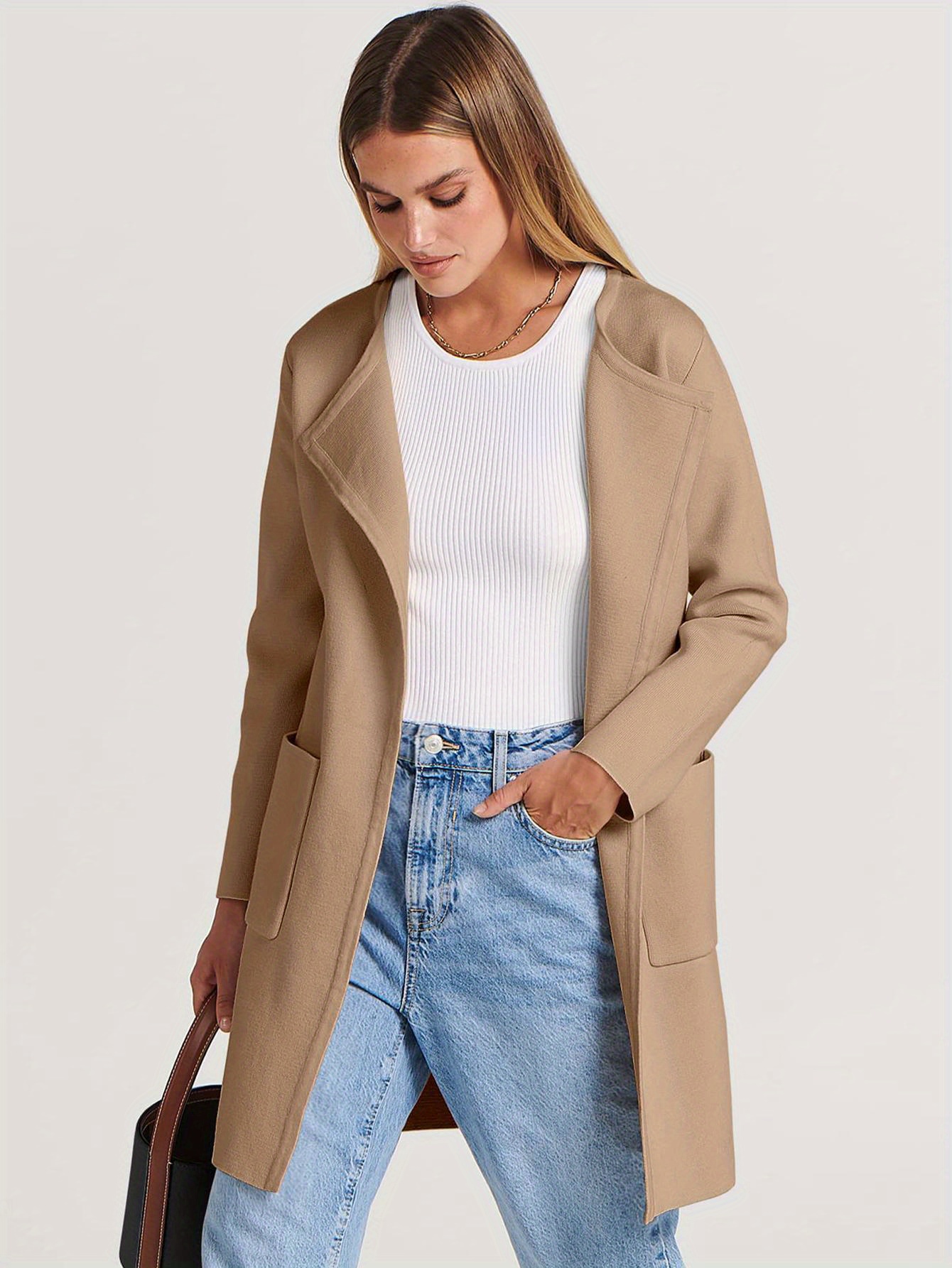 Women's Plus Size Casual Long Cardigan - Open Front, Knit Lightweight Sweater Jacket with Pockets, Machine Washable