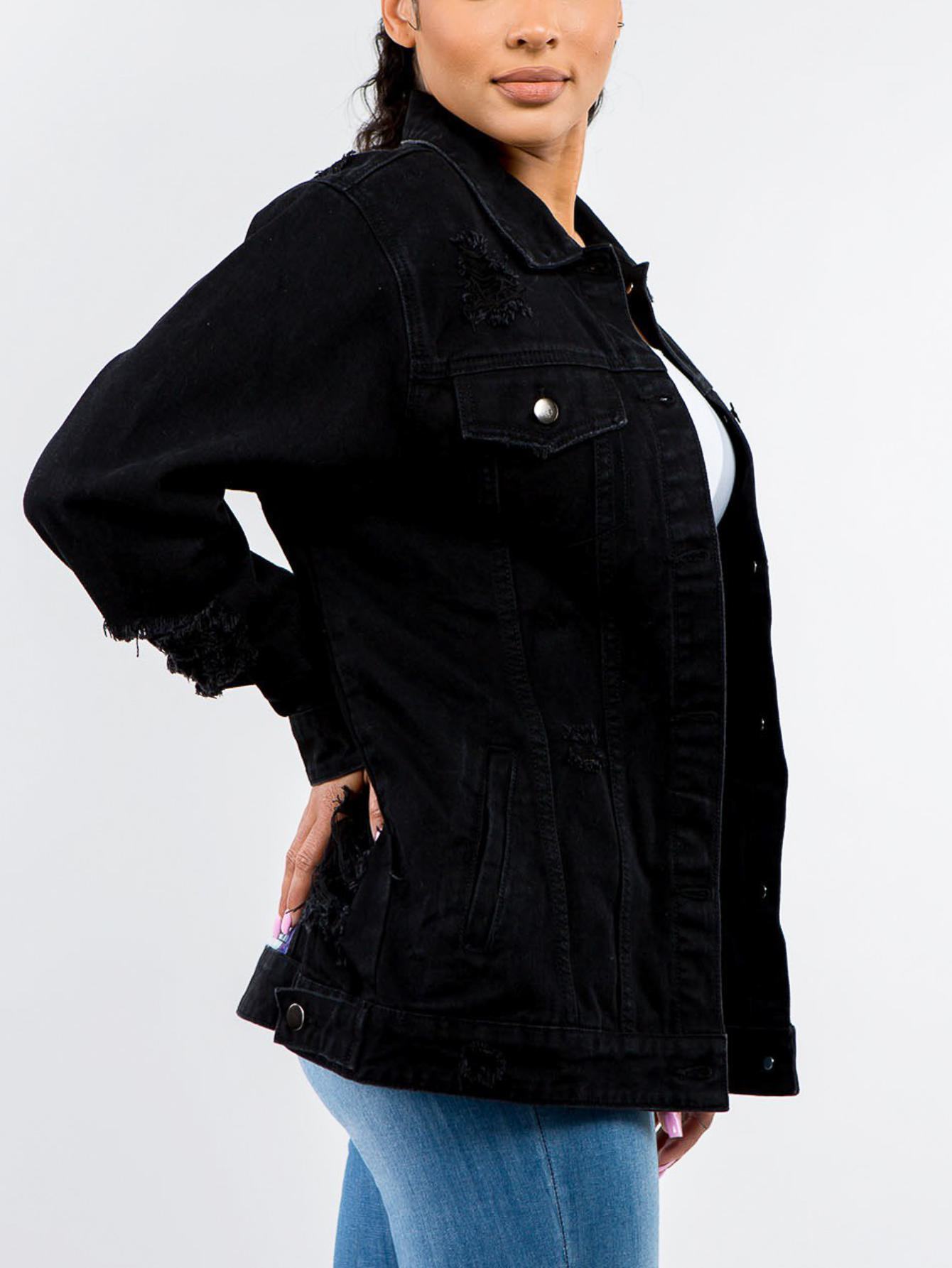 1pc Women'S Casual Cotton Faux Denim Jacket - Solid Color, Non-Stretch, Woven, Lapel Collar, Long Sleeve, Button-Front, Relaxed Fit, Hip Length - Versatile Outerwear for Spring/Fall/Winter