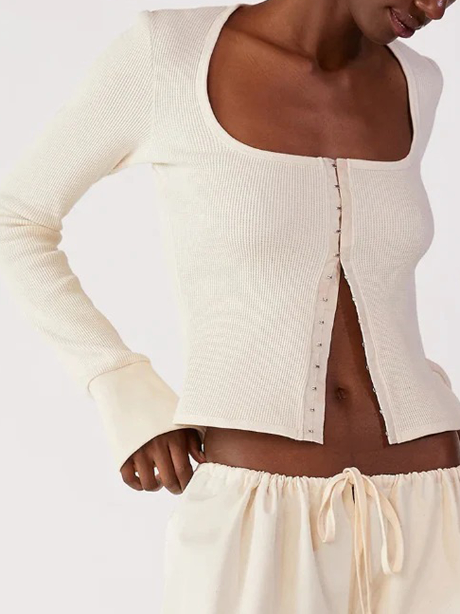1pc Women'S Plus Size Casual Long Sleeve T-Shirt - Solid Color Polyester Square Neck Top with Slight Stretch, Knit Waffle Fabric, Slim Fit Streetwear for All Seasons
