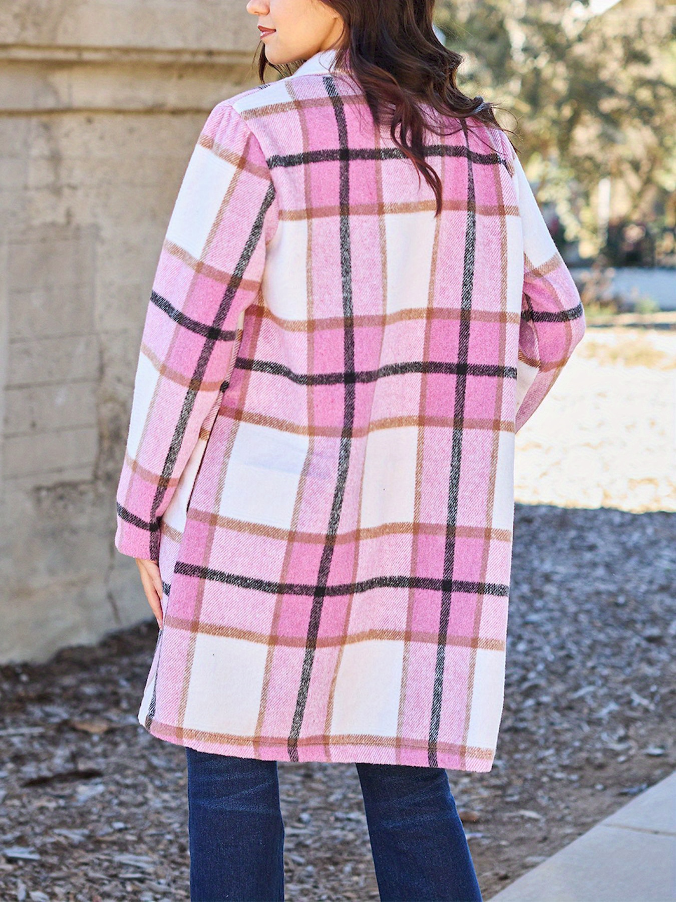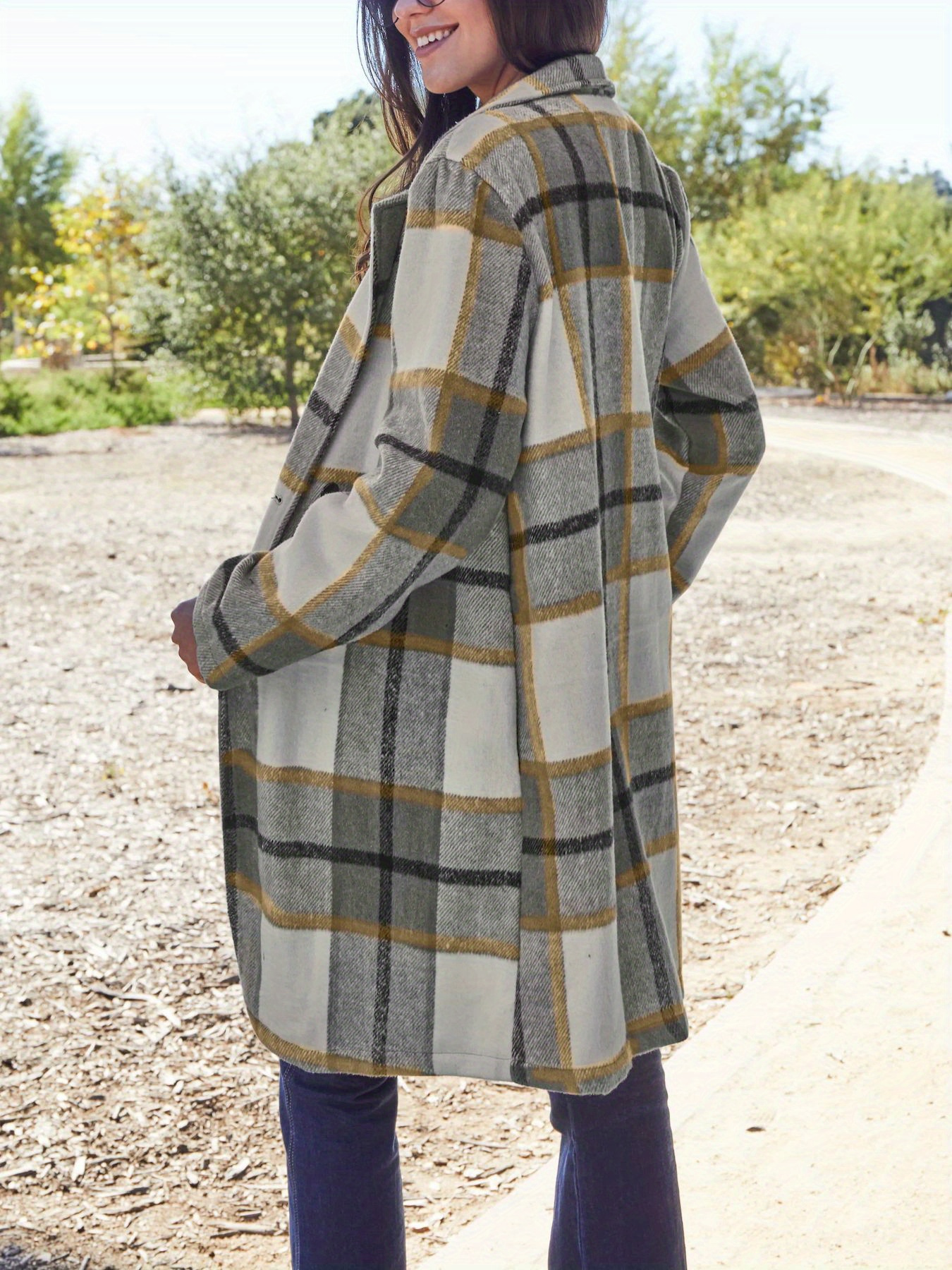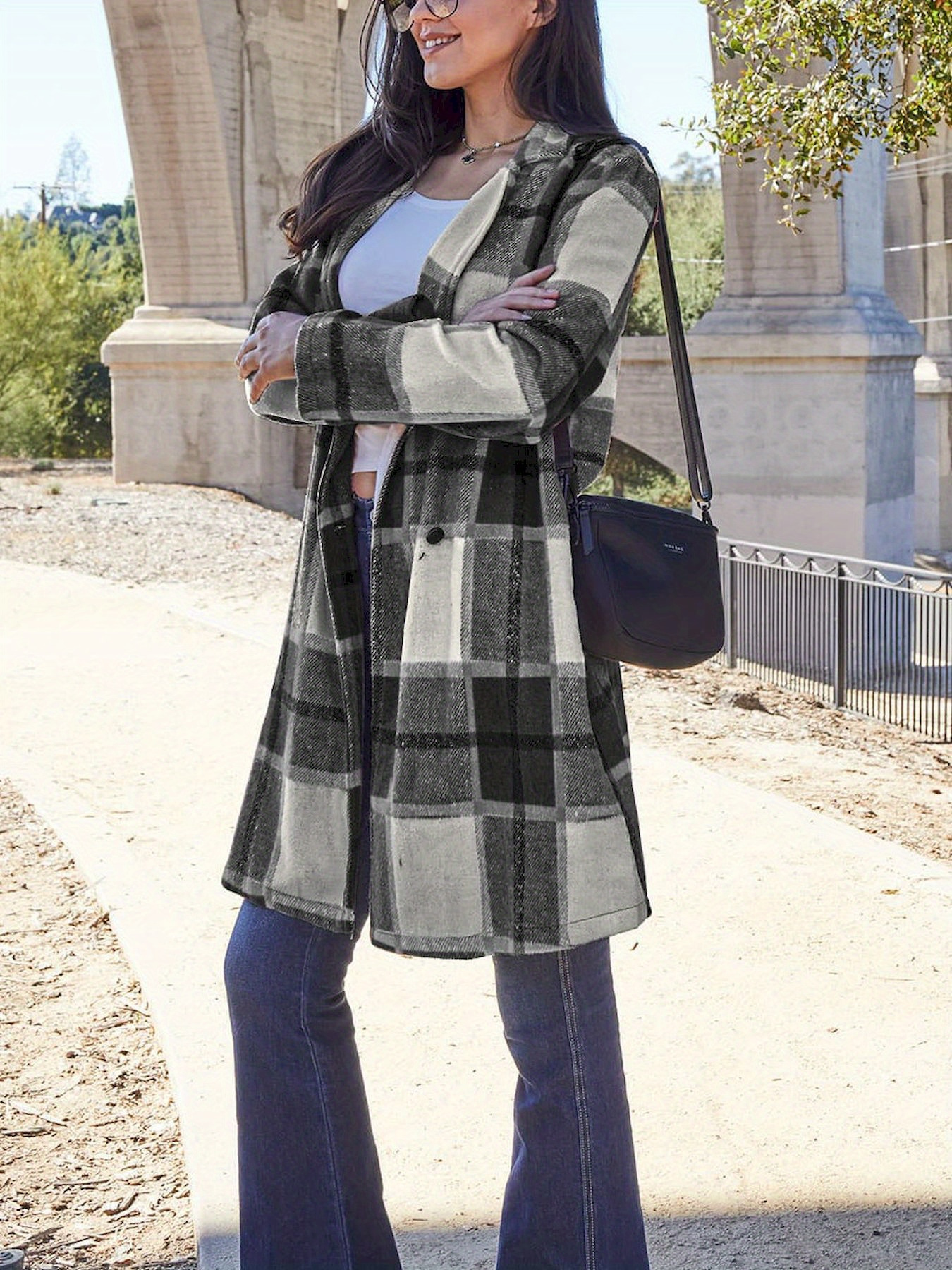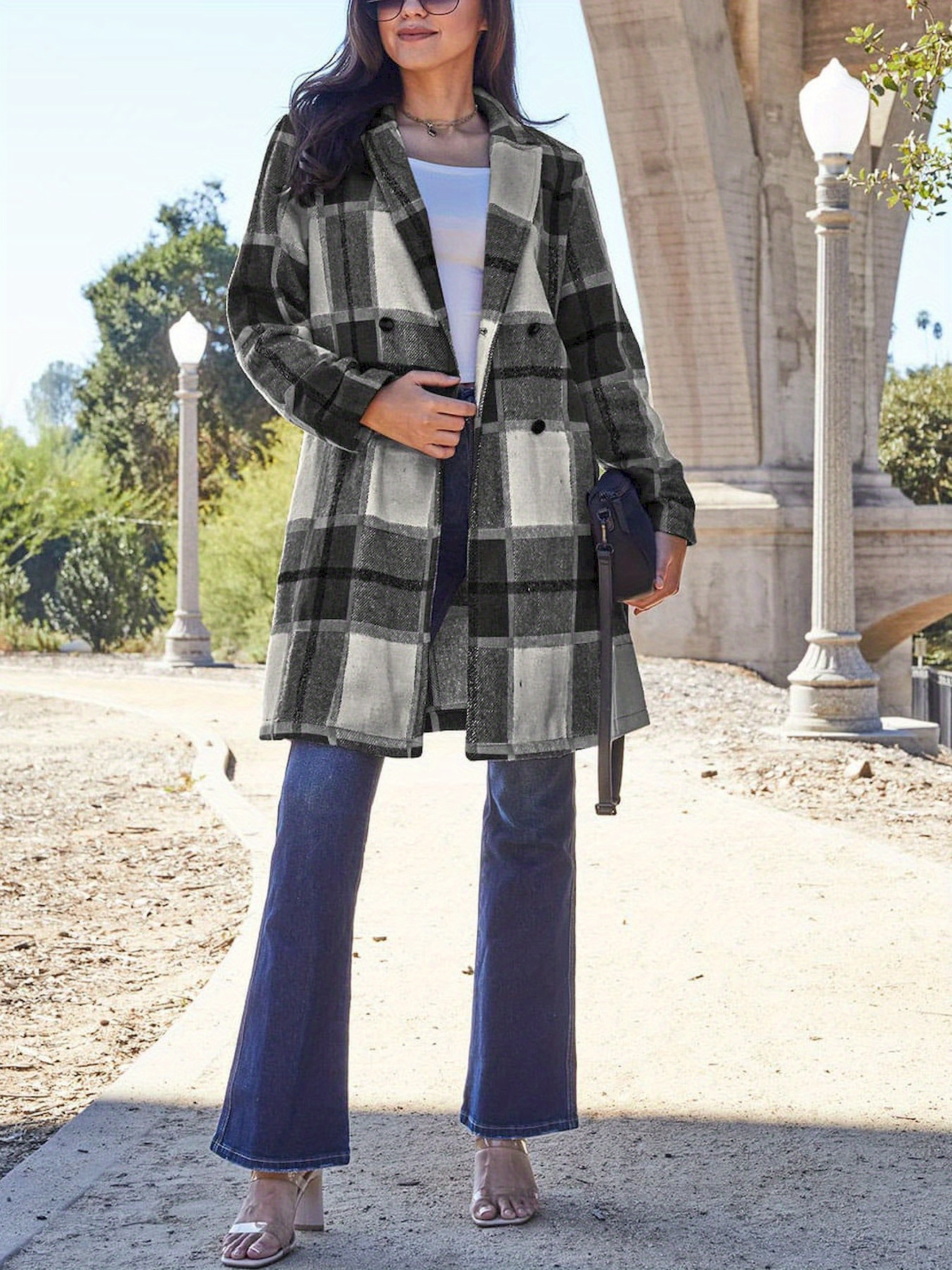 Chic Women's Plaid Long Coat - Double-Breasted, Lapel Collar with Full-Length Sleeves | Warm & Cozy for Fall/Winter | Machine Washable