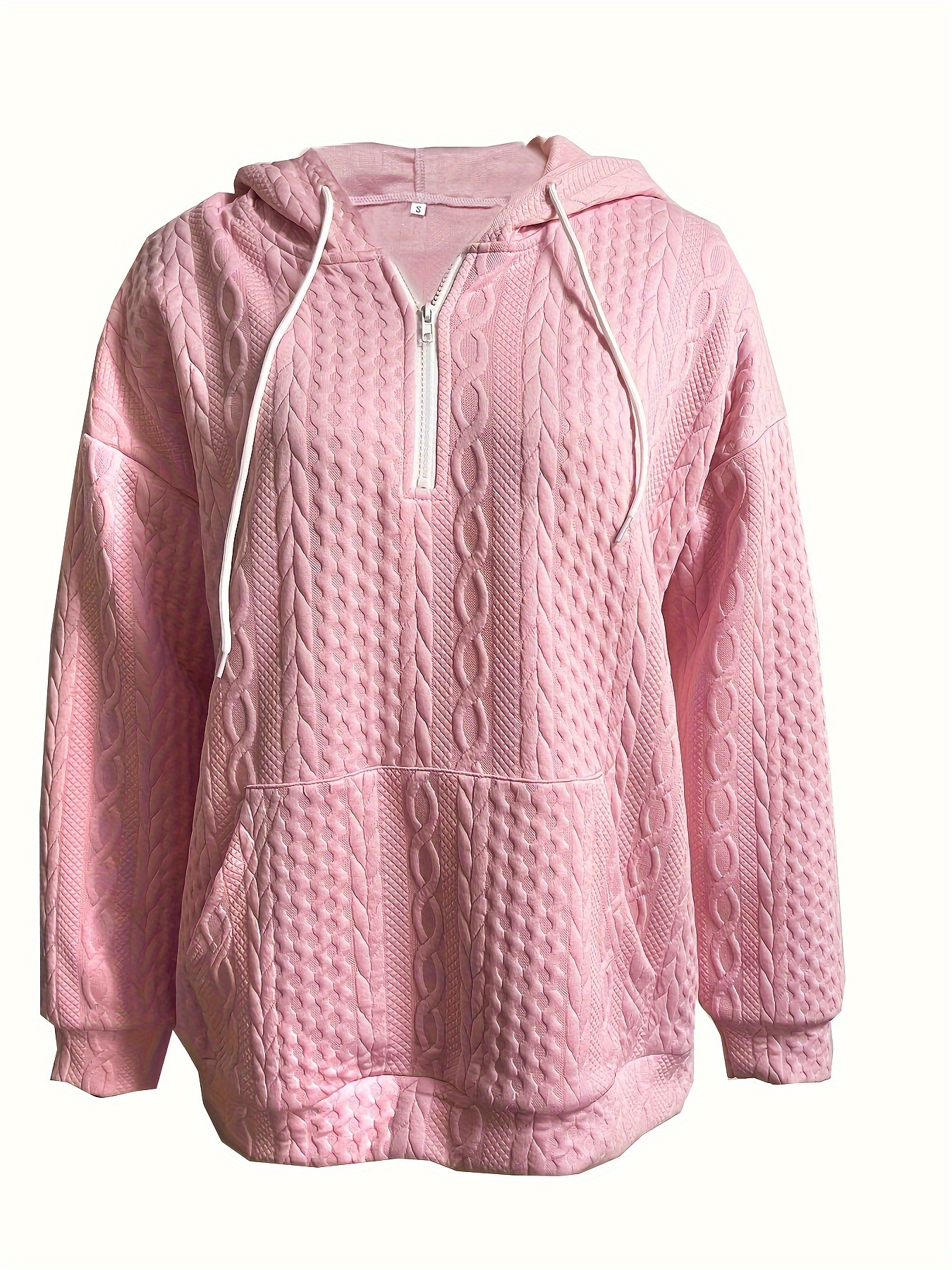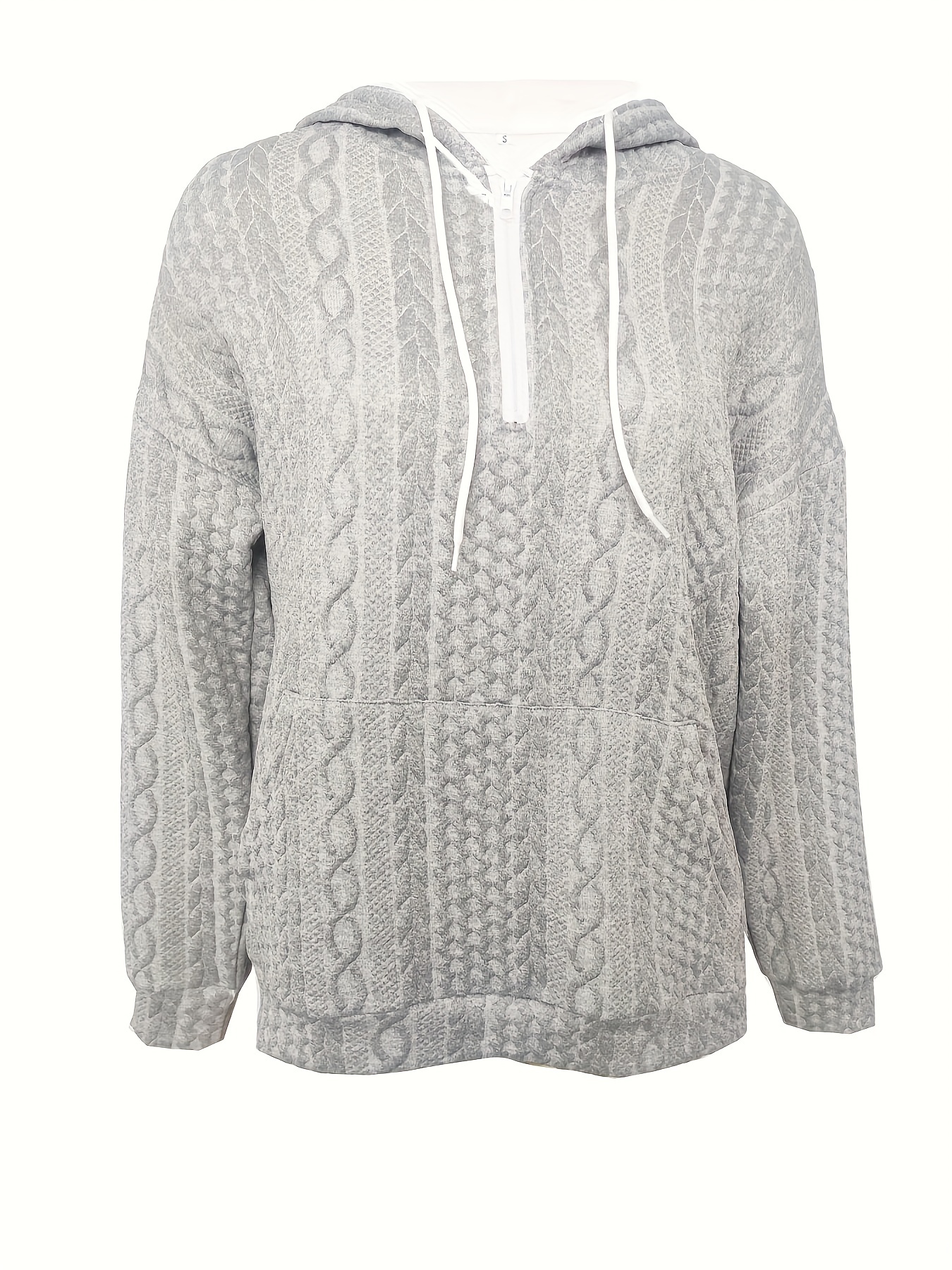 Elegant Cable Knit Hoodie with Pockets - Cozy Polyester Blend, Machine Washable - Women's Fashion for Fall/Winter