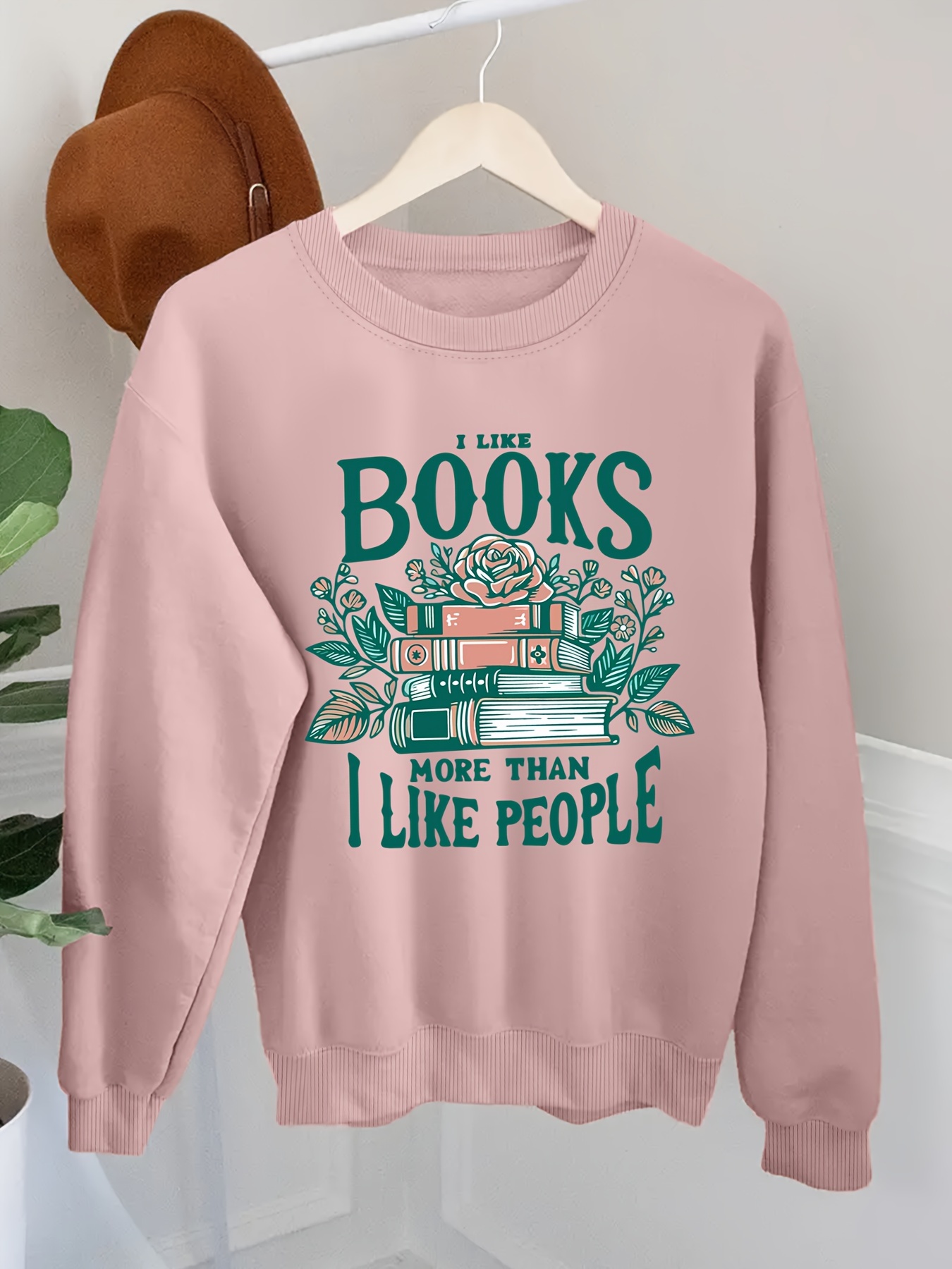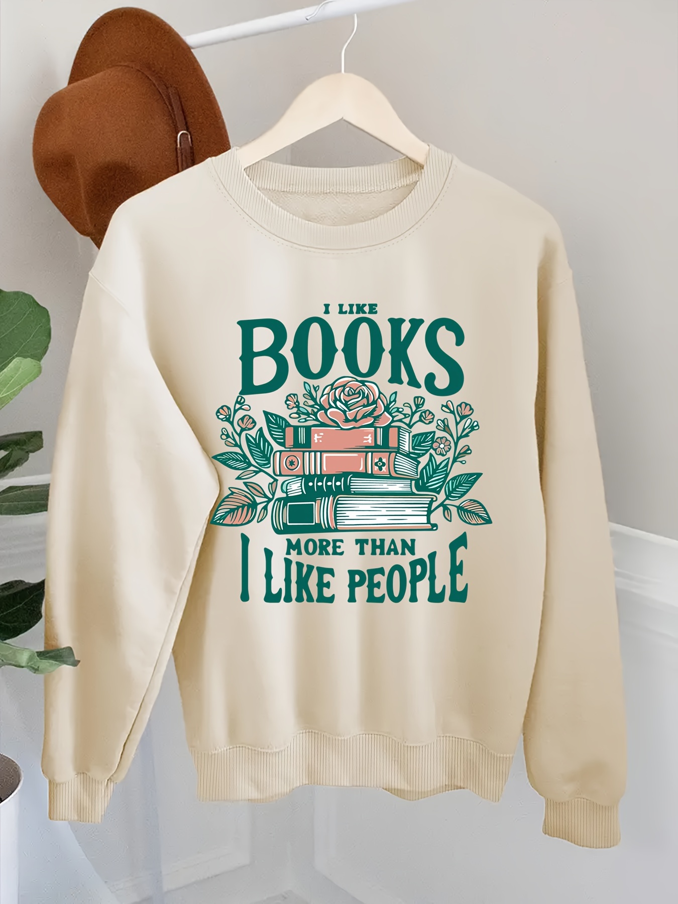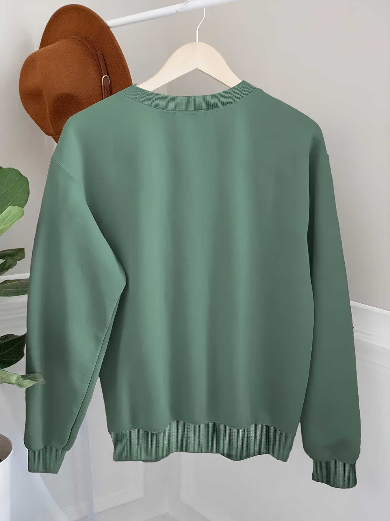 Plus Size Casual Crew Neck Sweatshirt with Alphabet Print, 100% Polyester Knit Fabric, Slight Stretch Pullover for All Seasons