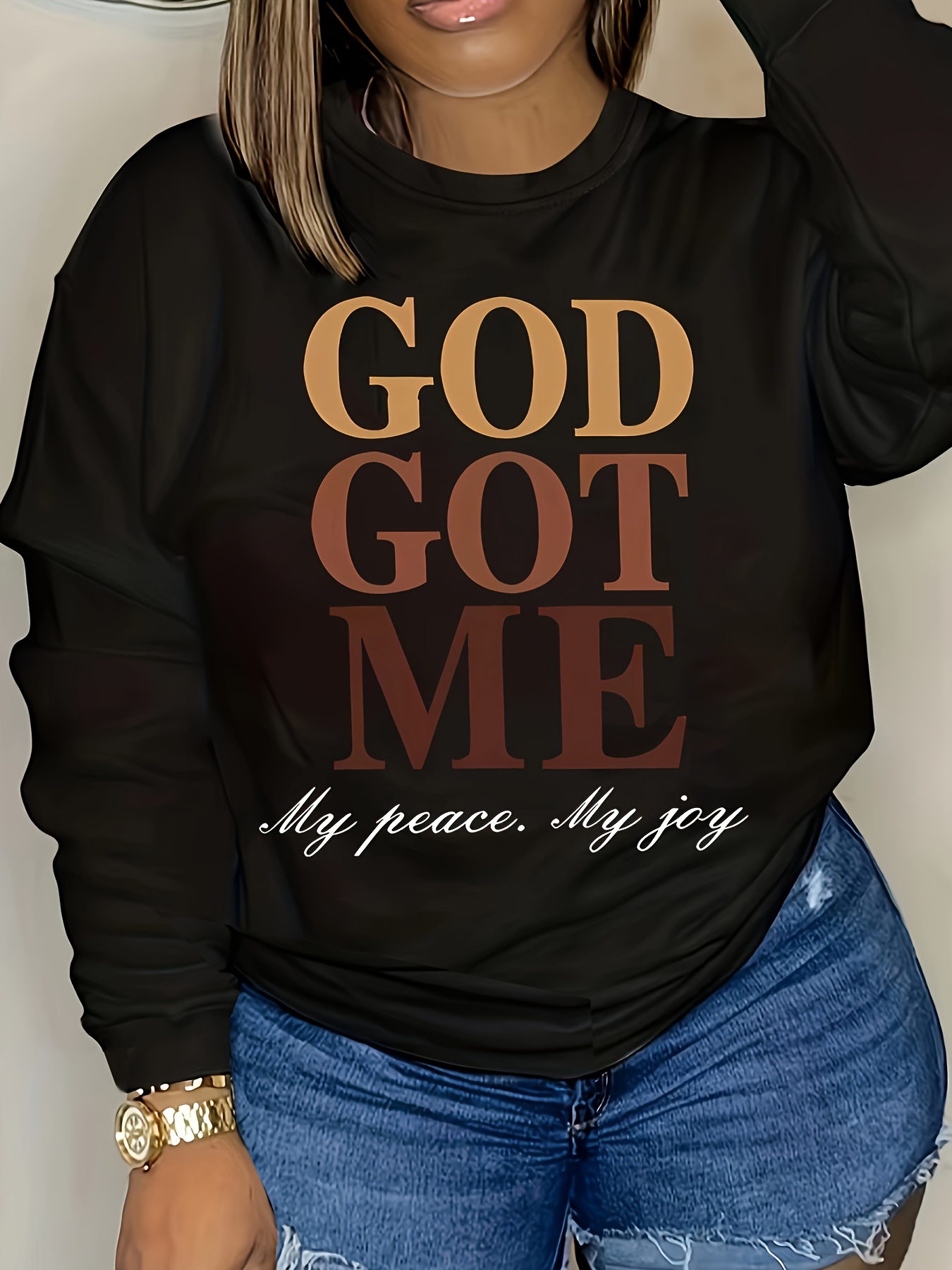 Plus Size Gradient Letter Print Sweatshirt, Casual Long Sleeve Crew Neck Sweatshirt, Women's Plus Size Clothing