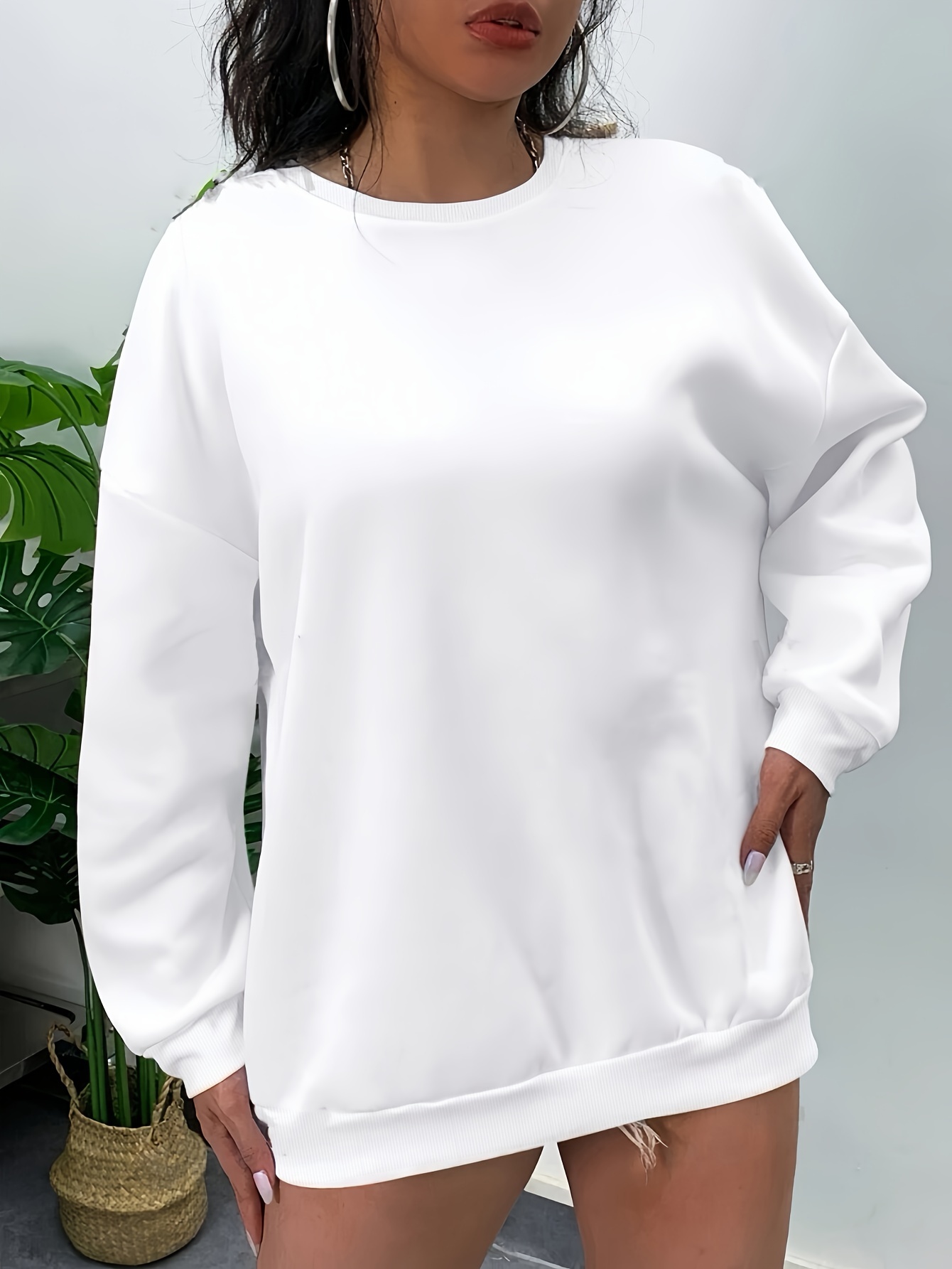 Plus Size Simple Solid Crew Neck Pullover Sweatshirt, Women's Casual Long Sleeve Clothing
