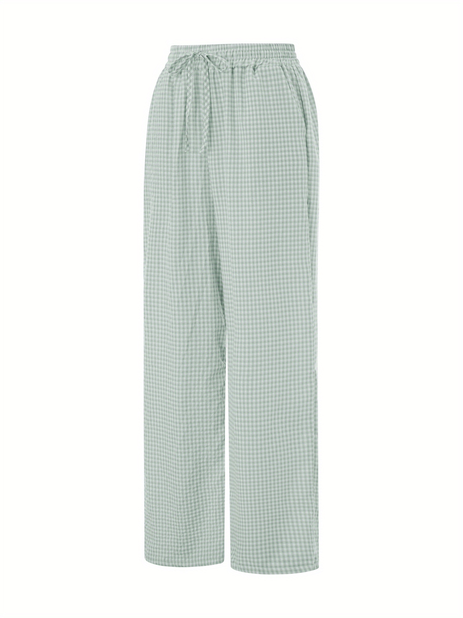 Women'S Wide Leg Polyester Pants - Casual All-Season Straight Leg Trousers with Elastic Waist and Pockets